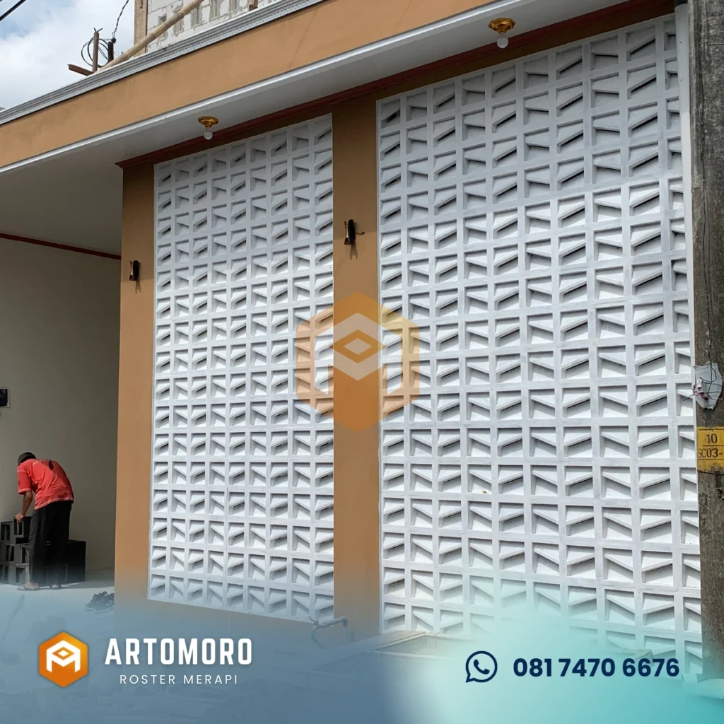 Dengan Pasir Merapi, kami memastikan setiap unit roster yang diproduksi menjadi sangat kokoh, anti-lapuk, dan tahan lama, menjadikannya investasi terbaik untuk pagar rumah, fasad, atau partisi ruangan yang menawan dan kuat